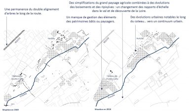 organisé autour de la production agricole, d’autre part, le val de Loire offre des paysages à l’intensité patrimoniale reconnue internationalement, unité qui, du fait de son incription à l’UNESCO, a vu la déclinaison d’un diagnostic plus précis illustrant les composantes matérielles du Bien. À partir d’un travail initial de caractérisation des paysages, le fil rouge