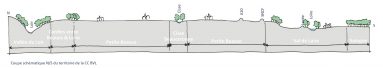 a permis de garantir la transversalité du PADD. Aussi, le paysage se décline au sein de chaque axe, apportant pour chacun d’entre eux des Objectifs de Qualité Paysagère. Des schémas, issus de situation rencontrées sur le territoire, ont permis de concrétiser et de faire atterrir la démarche de PADD.